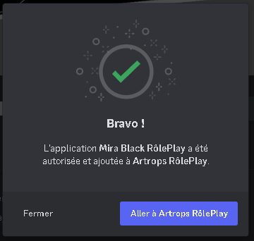 <figure><img src="https://3077981541-files.gitbook.io/~/files/v0/b/gitbook-x-prod.appspot.com/o/spaces%2F5517mVNrsiw3lzih7YuL%2Fuploads%2FD2TYcxJkJ9yh9qSFaHgG%2Fimage.png?alt=media&#x26;token=5ddab99a-975f-46d4-aa24-4ac733f8e19b" alt=""><figcaption><p>Regardes les Autorisation que le bot demande -> puis si sa vous vas appuies sur le bouton "Autoriser"</p></figcaption></figure>